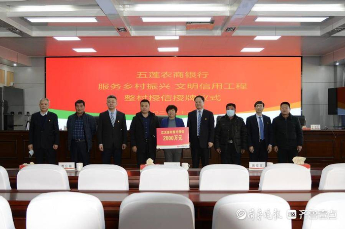 活动现场还举行了服务乡村振兴文明信用工程整村授信授牌仪式,五莲农商银行党委副书记、行长张成富为红泥崖村支部书记张守英颁发了整村授信2000万的授信证书。洪凝街道积极培育产业,五莲农商银行通过开展整村授信及时给予金融支持,促进农业、工业、服务业及重点项目提档升级。