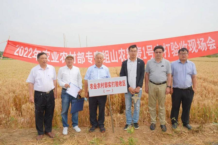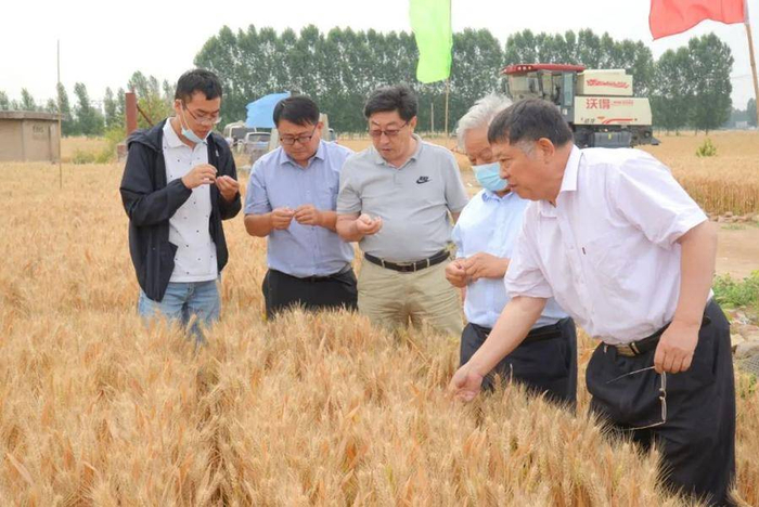 国家农业农村部小麦专家组专家、河南农业大学郭天财教授、江苏省农业技术推广总站王龙俊站长(研究员)、全国农技中心粮食处梁健农艺师、山东省种子管理总站蒋庆功站长(研究员)、山东省农科院作物所刘成所长(研究员)组成的专家组对功能小麦进行验收。