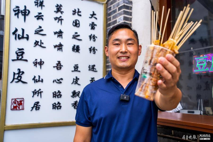 “神仙豆皮”的店主却是个30多岁的年青小伙,名叫郭磊。2020年春节新冠疫情后,他带着自己精挑细选的面筋豆皮项目来到牛楼小镇谈合作。牛楼小镇的“集体合伙人”模式,开出了免租金等一系列合作条件,成为郭磊在此开店的关键。