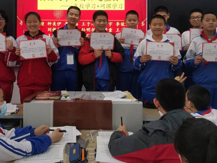 井琦的参赛作品《角落里的光芒》将五年前的亲身经历——发生在黄土高坡一个偏远小山村的感人故事以纪录片的形式进行了呈现。该作品在区赛、市赛、省赛层层角逐和较量中脱颖而出,作为山东省“数字创作—微视频”项目初中组的代表,被推荐参与全国交流活动。在国赛答辩环节,井琦准备充分,汇报陈述清晰,答问准确全面,最终勇夺国家级最高奖,被评为“创新之星”。