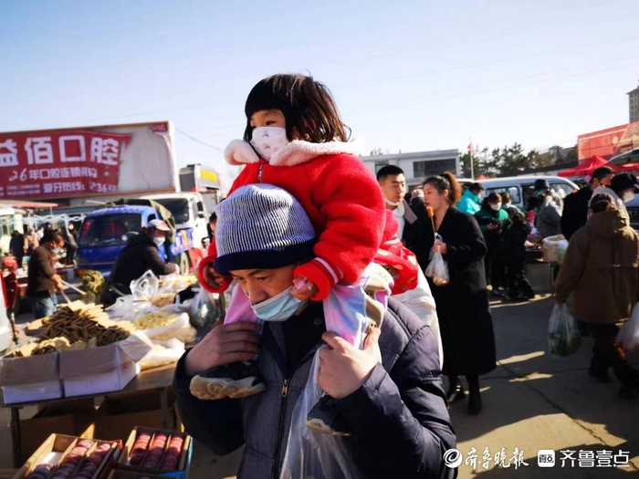 来自开发区的张女士带着5岁的女儿赶大集,感受浓浓的年味。“大集上人好多,好热闹,太有过年的感觉了。”张女士说她是1989年出生的,小时候经常跟着父母赶大集,“现在的孩子,赶集的次数不多了,今天趁着天气好,也带着女儿来感受一下。”