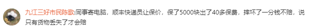 也有网友分享经历,“同事寄电脑,顺丰快递员让保价,保了5000块出了40多保费,摔坏了一分钱不赔,说只有货物丢失了才会赔”;