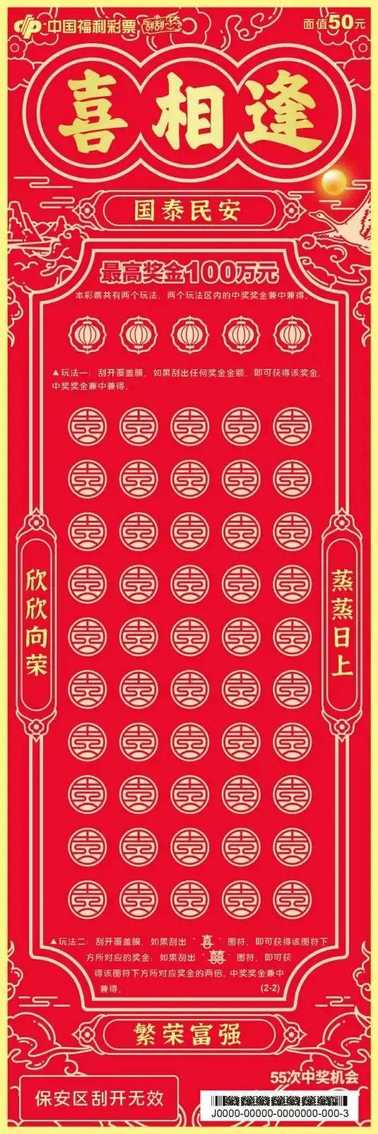 近期,福彩刮刮乐新游戏“喜相逢50元”在山东火热上市,超多中奖机会,最高奖金100万元!