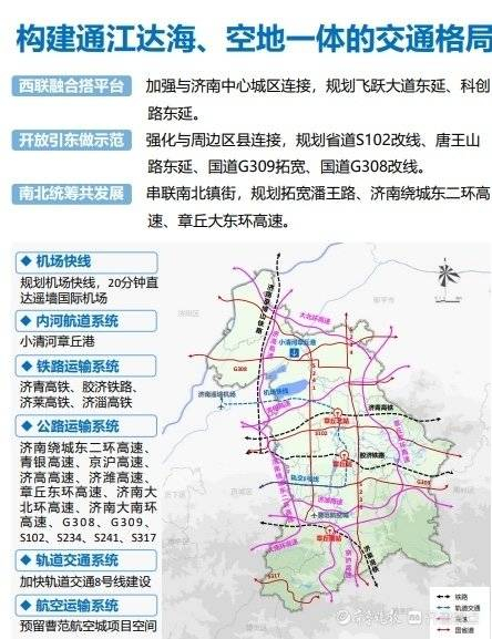基础设施,特别是交通基础设施的统筹布局,是实现区域一体化发展的重要前提。章丘区国土空间分区规划强调构建通江达海、空地一体的交通格局。