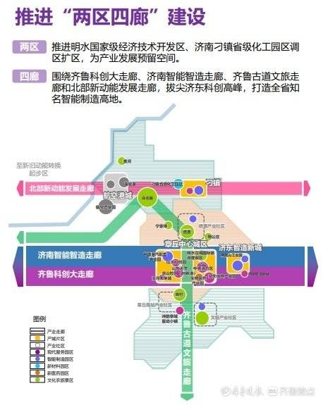 以齐鲁科创大走廊为引领,以龙山国 际创新城建设为契机,激活章丘区科 技创新活力;以济南智能智造走廊为引领,以明水 经济技术开发区为载体,加强与高新 区产业、交通对接,夯实章丘区制造 业发展;沿绣源河四十里风貌带,规划齐 鲁古道-文旅走廊,发展乡村文 旅,打造全域旅游示范区;推进刁镇省级化工园调区扩区, 释放小清河章丘港效能,加快刁 镇新兴小城镇建设,促进北部新动能产业转化提振济北绿 色新材料产业。