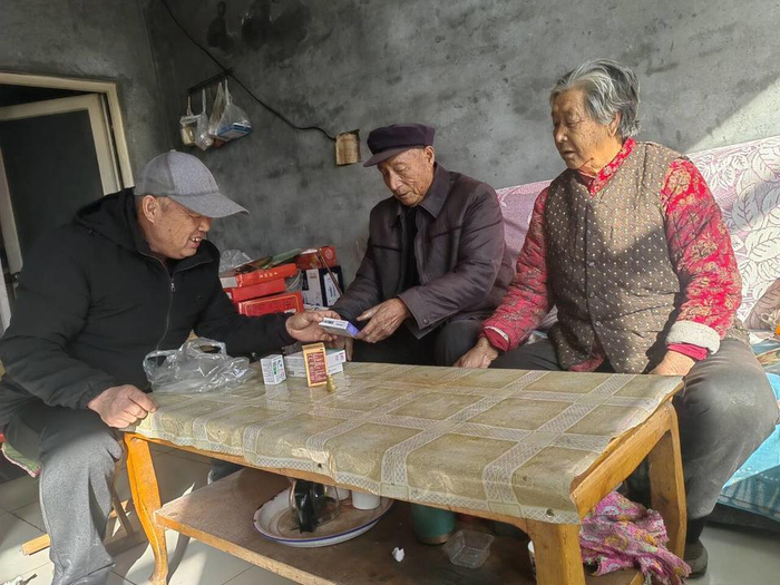 “我岁数大了,任何车也不会骑,腿还疼,到县城也不方便,这些药镇上买不着,胜才送来药太好了。”张庆友老人说。