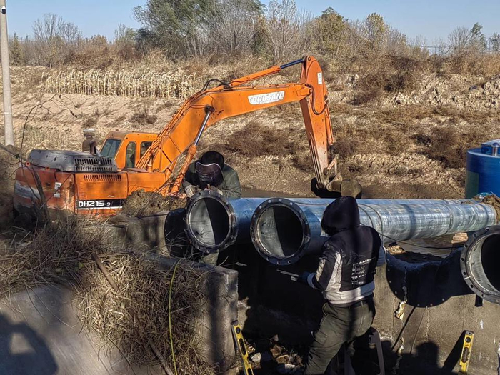 而在胡营河五支邓王泵站指导安装调试的“灌溉齐心办”专班负责人张新泉给笔者算了一笔账,“原先胡营河五支这边的耕地浇地非常困难,每次浇地要么铺设上千米的塑料管浇地,要么多台抽水机分二三次提水,浪费了大量人力物力,一亩地浇地费用80元以上,现在投入70余万元建成的一体化泵站,四根出水管每小时出水量可达2000方,能灌溉18亩地,浇地费用每亩也就三四十元,能彻底解决邓王、杨家、前后皂四个村偏远3000余亩的浇地问题,浇一遍地与以前相比可为群众节省10万元以上。”