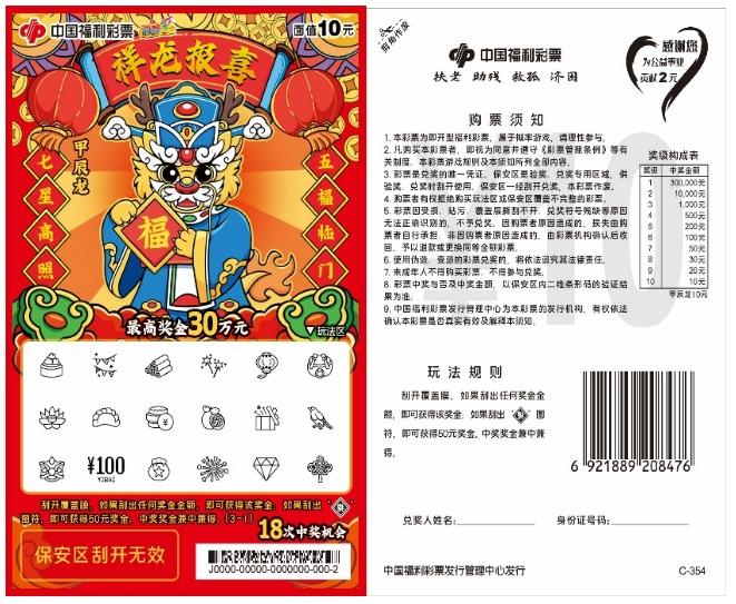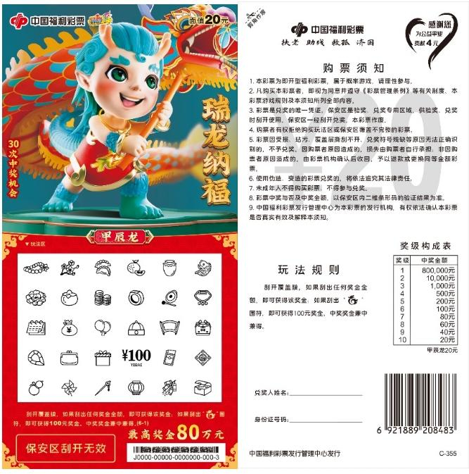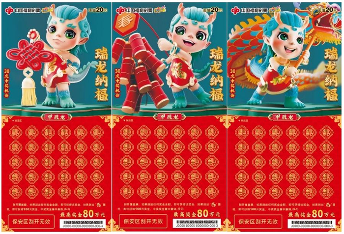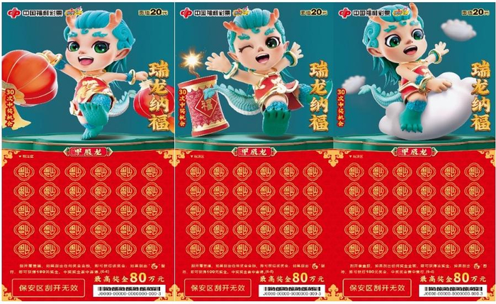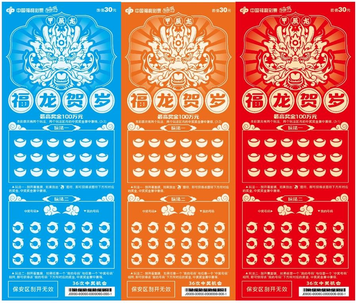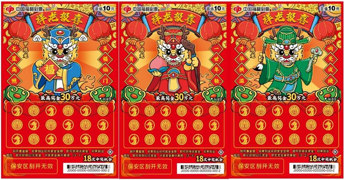 2024甲辰龙年,万象更新,龙腾四海,增福纳吉。为迎接甲辰龙年春节的到来,福彩刮刮乐“甲辰龙”生肖系列主题票重磅上市。10元面值“祥龙报喜”、20元面值“瑞龙纳福”、30元面值“福龙贺岁”、50元面值“福耀龙腾”四款生肖主题票新游戏,为彩友们送上新春祝福与好运。