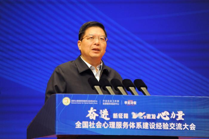 中国社会工作联合会会长陈存根致辞陈存根在致辞中指出,滨州市委、市政府一直高度重视社会治理,特别是社会心理服务体系建设,始终坚持党建引领,做实“平安是基、心安是魂”,政策配套措施有力,队伍整齐,工作扎实,经验丰富,有效的社会心理服务为助力“五安”工程建设,为滨州社会和谐稳定经济发展繁荣作出了重要贡献。他表示,社会工作者是社会心理服务体系建设中的中坚力量,中国社会工作联合会是我国枢纽型、引领型、最大的职业从事社会工作的联合协会。下一步,中社联将贯彻落实党中央决策部署,充分发挥专业社会工作者的优势,助力社会心理服务体系建设,推动建设一站式基层社会心理服务平台,协助政府全面开展社会心理服务,助力健全各领域社会心理服务网络,加强社会工作者队伍的技能培训,以系统思维不断健全完善社会心理服务体系。他说,让我们在习近平新时代中国特色社会主义思想指引下,共同深入推进社会心理服务体系建设理论同中华优秀传统文化相结合,同社会治理体系、精神文明建设相结合,积极探索新时代枫桥经验的发展规律,逐步走出一条社会心理服务体系建设助力中国式现代化的发展之路,使健康中国真正落地生根、开花结果。