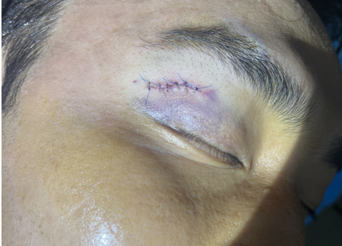据了解,吴兴涵的伤口在左眼皮上方。在伤口附近,还有少面积淤青。结束比赛任务后,吴兴涵的伤口被缝了18针。