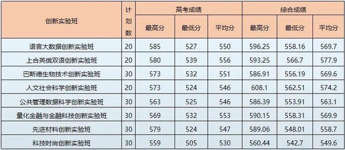2023年青岛大学综合评价各创新实验班招生录取情况