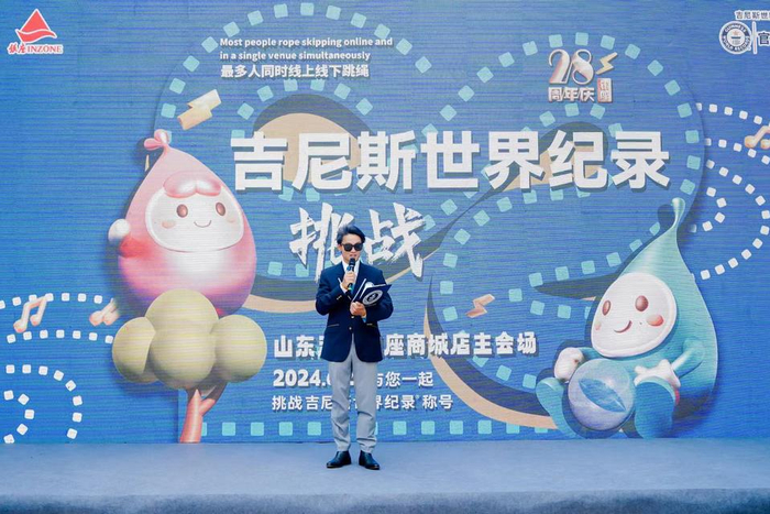 6月2日上午,伴随着飞舞的绳花与跃动的身影,一项新的吉尼斯世界纪录在银座欢乐达成。据了解,本次挑战项目名称为Most people rope skipping online and in a single venue simultaneously(最多人线上线下同时跳绳),线上线下同时进行。项目线下主会场设在位于泺源大街66号济南银座商城店。而线上分会场则分别设立在银座商城位于山东、河南、河北各省的各家分店。挑战中,线下设备同时显示线上视频窗口,各地会场万人参与,同时完成90秒线上线下不间断跳绳。随着计时结束,吉尼斯纪录认证官宣布,“最多人线上线下同时跳绳”挑战成功。