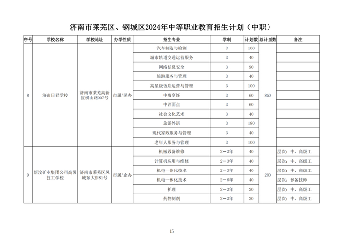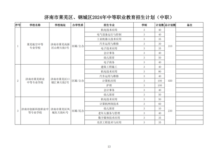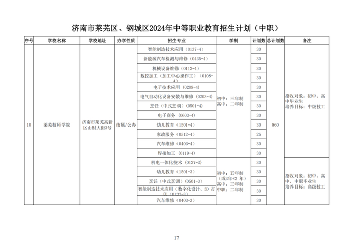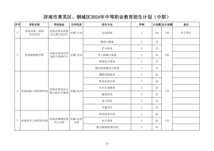 (2)中等职业学校招生指导计划共计3470人。包含中专招生指导计划2410人、技工学校招生指导计划1060人。