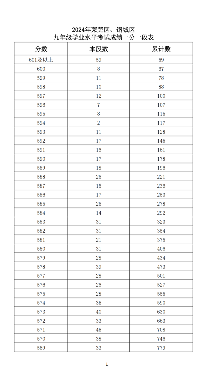 公布各类志愿填报资格线的同时,公布莱芜区、钢城区考生成绩一分一段表。