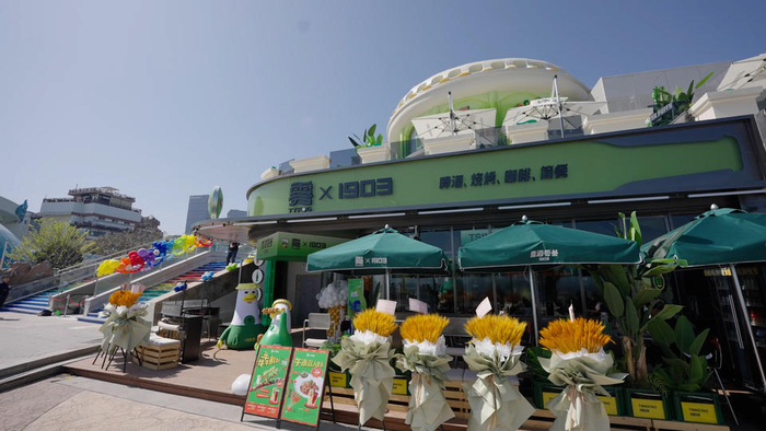 据介绍,这里是国内首家景区TSINGTAO 1903 MIX主题门店,于今年4月26日正式开业,以新鲜啤酒、现烤鲜肉、啤酒冰淇淋、啤酒面包等综合业态为核心,外观设计植入时尚IP“HaJo Yaa”元素,以啤酒活力激活城市记忆,使空间更具生命力。