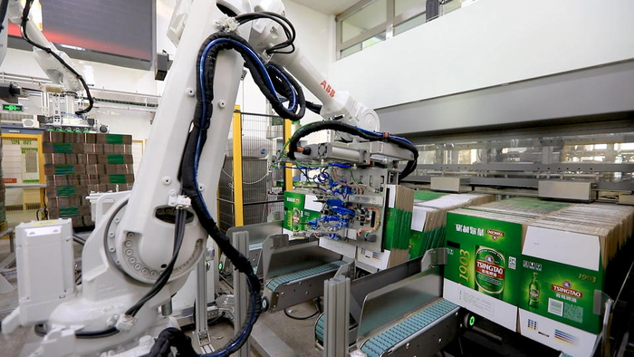 在青岛啤酒,智能制造渗透到了每条生产线、每道生产工序。当前,青岛啤酒厂已经建成包装产线管理等7大智能管理系统,通过数字技术与生产制造的融合,啤酒厂近三年碳排放密度降低48%、单日平均产量提升60%、成品出库效率提高了50%。