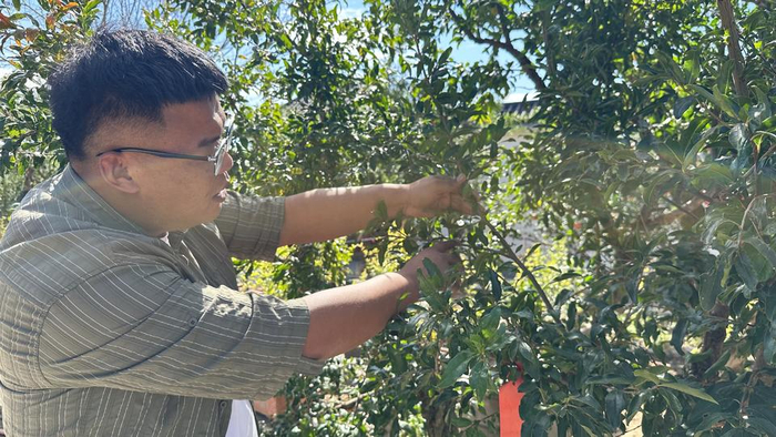 刘威在为“生童子功”石榴盆景扦插选枝。