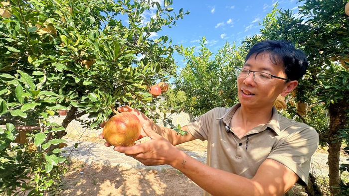 刘远在介绍他种植的大青皮石榴。在枣庄市峄城区榴园镇朱村,刘远种植的30亩石榴已陆续成熟。“今年受极端天气影响,高温时间持续长,石榴完全成熟采摘还得等上十来天。”顺着果园上山,刘远边走边顺手薅了薅园子角落里长的野草。