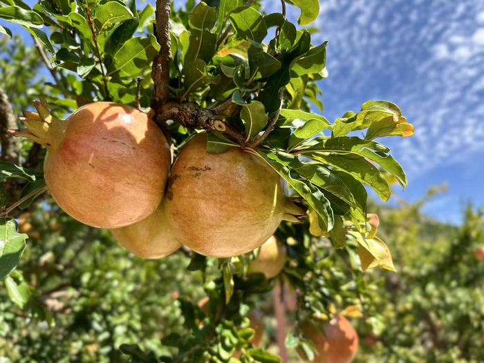 与朱村相隔8公里的逍遥村,村民曹佃国的石榴园里的石榴也挂满枝头。曹佃国种植了270亩石榴,据介绍,种植前三年,政府每亩奖补800元土地租金、300元管理成本。此外,他家的270亩石榴种苗都由政府免费提供。