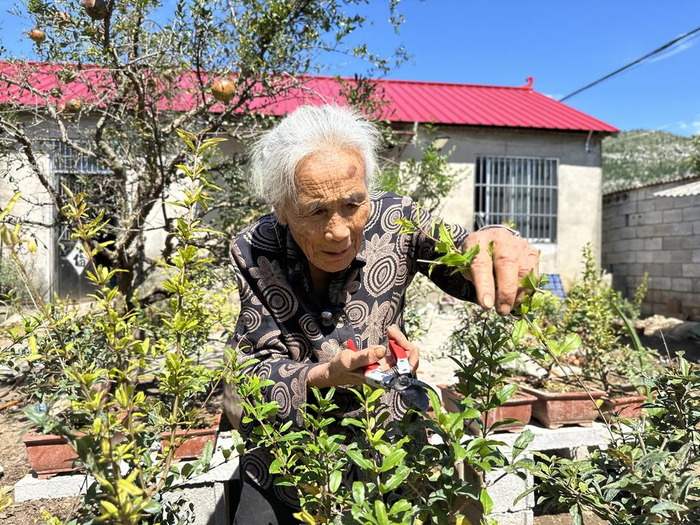 90岁老人孙张氏在修剪石榴盆景。“石榴是咱枣庄的特产,是家乡的景,也是家乡的文化。盆景浓缩的是整个枣庄峄城的石榴文化。”在枣庄峄城万景园盆景园内,张忠涛正和农户交流分享石榴盆景的制作技巧和经验。从小和石榴树一起长大,看着父亲整天侍弄石榴盆景,耳濡目染中张忠涛对石榴盆景制作也产生了浓厚的兴趣,跟着父亲收获了一些基本制作技艺。张忠涛制作的盆景作品形式多样,造型美观,注重艺术表现,兼顾整体造型与花果观赏,先后在国际、国内大型花卉、园艺展上获得金奖100余枚,并在中国盆景展览会上获得金奖四连冠。