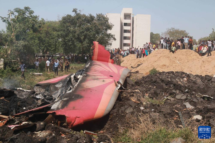 印度古吉拉特邦艾哈迈达巴德客机失事现场。12日,一架客机在印度古吉拉特邦艾哈迈达巴德机场坠毁。印度航空公司证实,当天坠毁的客机载有242人。受坠机事件影响,艾哈迈达巴德机场一度暂停运营。