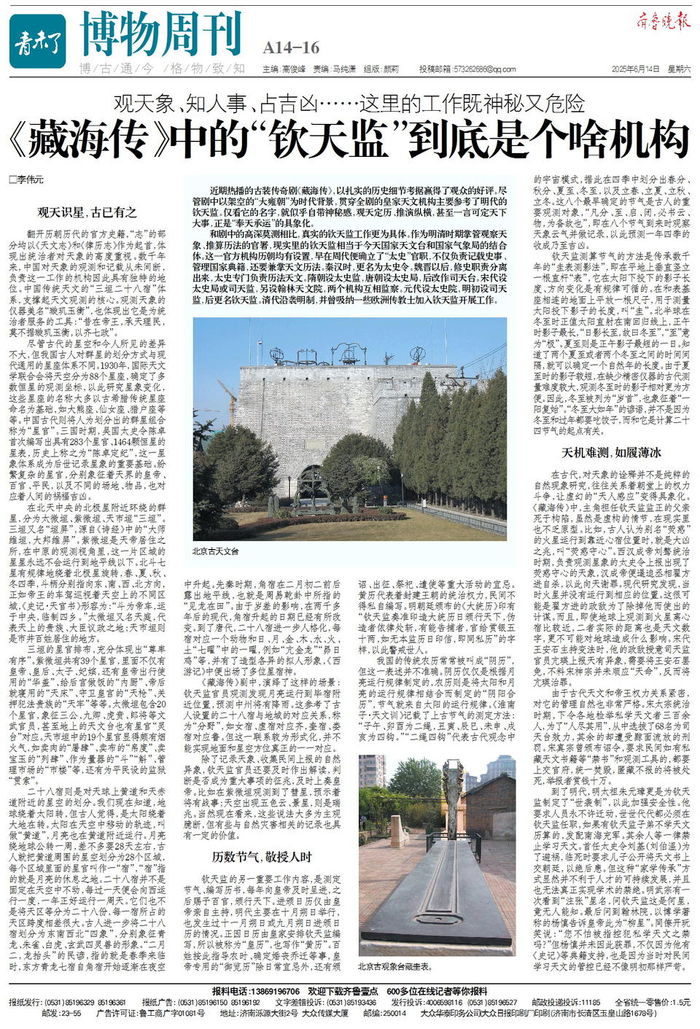近期热播的古装传奇剧《藏海传》,以扎实的历史细节考据赢得了观众的好评。尽管剧中以架空的“大雍朝”为时代背景,贯穿全剧的皇家天文机构主要参考了明代的钦天监。仅看它的名字,就似乎自带神秘感,观天定历、推演纵横,甚至一言可定天下大事,正是“奉天承运”的具象化。