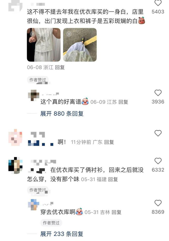 近日,有网友发帖称自己在优衣库买的衣服有色差,镜子里的颜色和实际颜色差别很大。