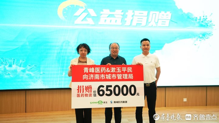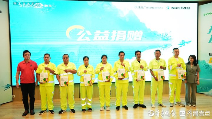 漱玉平民大药房与青峰医药集团多年来始终秉持服务大众健康的初心,致力于为患者提供安全、有效、经济的优质药品和专业服务。活动中,双方企业向济南市城管局捐赠抗病毒口服液以及伊速达®玛舒拉沙韦片共价值6万余元,用于慰问守护城市美好、服务大众生活的“泉城最美工作者”群体。