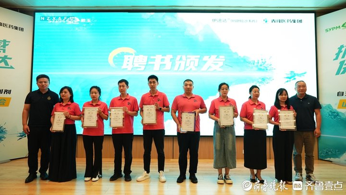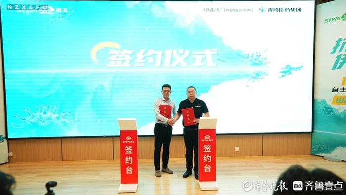 会议中,漱玉平民大药房常务副总裁李强、青峰医药集团副总经理田源共同签署战略合作协议,伊速达®玛舒拉沙韦片将通过漱玉平民大药房惠及广大流感患者。随后,青峰医药集团零售部总监刘伟以及漱玉平民大药房商品中心总监翟文海为8位“伊速达推广大使”颁发证书。