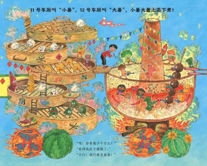 介绍节气民俗的图书很多,《吉祥怪怪车》的不同之处在于,它满足儿童好奇的特点,设计了“节气列车”的形式,以超长拉页逐一介绍二十四节气,以及100多个民俗知识点。