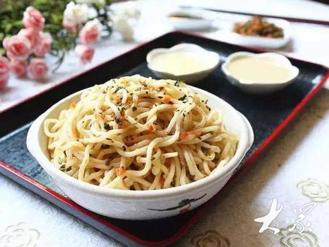 老济南凉面:也叫 “麻汁面”,是济南传统的面食。胡萝卜、香椿芽、黄瓜丝、芝麻酱、蒜泥是济南凉面必备的 “五大法宝”。拌好的面,麻汁香浓,黄瓜丝清爽,再加上特有的腌胡萝卜丁与腌香椿末的独特风味,别具一格。