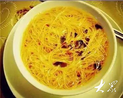 金丝面是山东安丘汉族传统名吃,始于景芝,已有300多年的历史,与三页饼堪称景芝白案佳品的孪生姊妹,为贩酒客商常用食品。金丝面色黄丝细,犹如金丝,软硬适度,清香可口。
