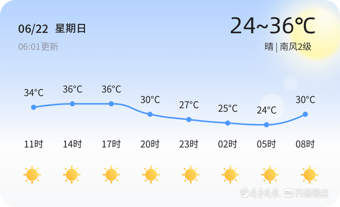 今日是6月22日,农历五月廿七,淄博市迎来了一天的晴朗天气。根据气象部门监测,今日淄博各区气温普遍在24℃至36℃之间,南风2级,空气湿度为77%,PM2.5指数为54,空气质量良好。市民朋友们可以享受明媚的阳光,适合户外活动。