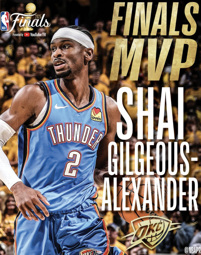 北京时间6月23日,NBA总决赛G7落幕,雷霆103:91击败步行者,以总比分4:3夺得NBA总冠军。赛后,球队当家球星亚历山大夺得FMVP殊荣。