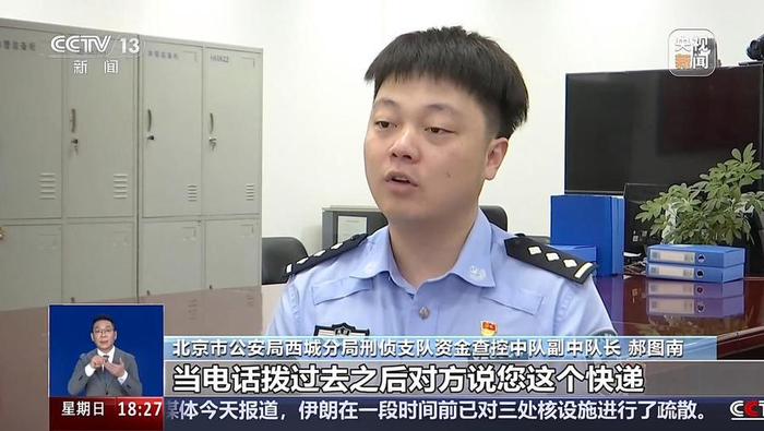 北京市公安局西城分局刑侦支队资金查控中队副中队长 郝图南:当电话拨过去之后,对方说您这个快递,是腾讯给您寄过来的一个百万保障的单号,因为您没有及时去拿,所以这个快递被收回了,然后说您稍等,我给您转接一个专业的客服人员为您解决这个问题。