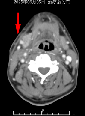 经过一段时间的系统治疗,奇迹出现了。患者右颈部巨瘤已基本消失不见,颈部形态与活动功能大幅改善。复查CT影像清晰显示,肿瘤病灶达到完全缓解(CR)标准。从吞咽困难到正常进食,从活动受限到行动自如,这份康复不仅让许先生重获健康体魄,更让他重新燃起了对生活的希望。