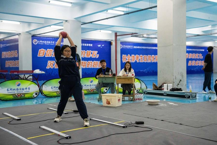 4月16日,在长沙市长郡双语实验中学,考生在进行投掷实心球考试。新华社记者 陈思汗 摄配套改革正同步深化。今年以来,各地教育部门要求落实每天“一节体育课”“体育活动两小时”,对保障运动时长、丰富体育活动提出刚性要求。北京第二实验小学开展“体育是第一学科”改革,学生可以在体育课上自主选择项目;江西芦溪镇第三中心学校的课后服务提供多种体育“菜单”,学生参与率高达99.1%……