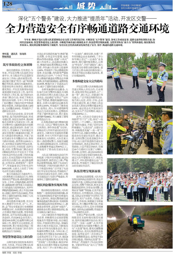 今年来,聊城开发区交警大队紧紧围绕公安交管工作现代化目标,不断深化“五个警务”建设,各项工作成效显著。道路交通事故预防方面,协同共治显成效;智慧警务建设迈上新台阶,不断提升城市通行精细化水平;队伍管理呈现新面貌,交管铁军队伍“战斗力”得到再强化;便民服务改革再深入,便民利企服务保障有了新提升,为全区社会经济高质量发展营造了安全、有序、畅通的道路交通环境。
