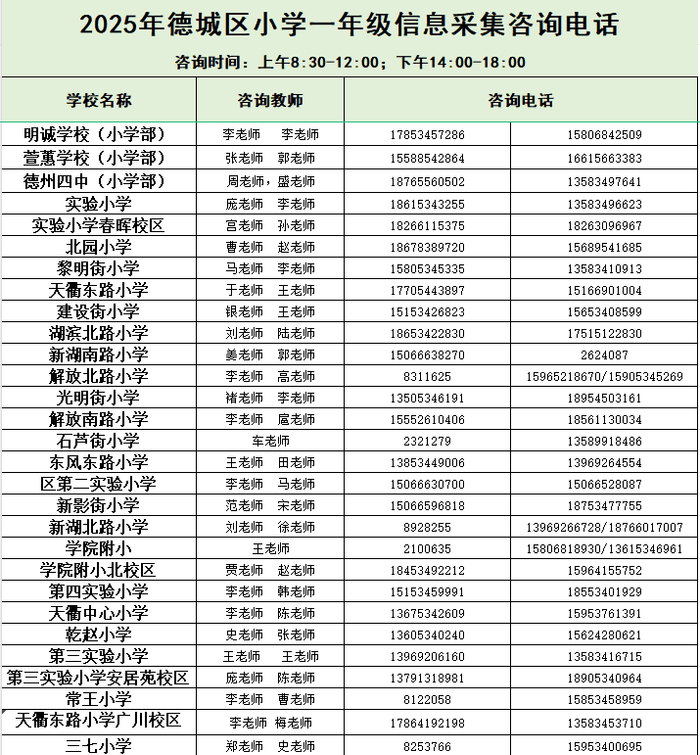 为全面做好2025年德城区小学一年级新生入学工作,在正式报名前,对需在德城区入学的适龄儿童进行信息采集。现将有关事项公告如下: