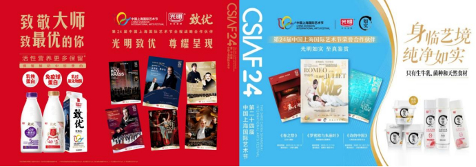 光明致优、光明如实作为全程战略合作伙伴、荣誉合作伙伴独家冠名第24届中国上海国际艺术节多台国际顶尖剧(节)目,以鲜活姿态共塑世界一流艺术节展。