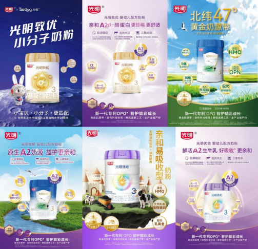 2025年,光明乳业围绕市场真实需求开展了一系列扎实的落地动作与赋能服务,从产品研发到渠道赋能实现全方位突破,针对不同阶段婴幼儿的生长需求,打造了多元化、精细化的奶粉产品矩阵。其中,光明致优婴幼儿配方奶粉源自北纬47°黄金奶源带,甄选高品质奶源,创新添加α-乳清蛋白+CPP双小分子营养组合,助力宝宝高效吸收营养;更搭配独特乳脂球膜与乳源燕窝酸配方,精准匹配宝宝生长发育关键需求,凭借硬核产品力实现市场份额的快速增长。光明致优A2奶源版含有丰富的α-乳清蛋白+CPP,双小分子营养,助力宝宝更好吸收;独特乳脂球膜与乳源燕窝酸的配方,满足宝宝生长需求。光明牧场婴幼儿配方奶粉特别添加新一代专利OPO和36倍益生菌,搭配DHA+ARA益智组合、5倍乳铁蛋白及多重维生素,构建科学营养矩阵,全方位护航宝宝健康成长,用创新配方诠释百年品牌的品质坚守。光明牧场A2奶源版基于亲和A2β-酪蛋白,添加新一代专利OPO,升级吸收效果;结合36倍益生菌和双益生元,助力宝宝肠道健康。光明优幼婴幼儿配方奶粉以新一代专利OPO结构脂为优势,直击宝宝脂质吸收关键环节,有效提升营养利用率。DHA、ARA、CPP辅以低聚半乳糖、核苷酸和叶黄素,全方位覆盖婴幼儿成长所需,为万千家庭带来值得信赖的成长守护。光明优幼A2奶源版精选鲜活A2生牛乳,含有亲和A2β-酪蛋白和专利OPO、叶黄素等营养成分,为宝宝提供全方位的健康支持。A2奶源版产品系列不仅秉承光明乳业一贯的高标准品质,且源自光明乳业旗下的北纬47°光明富裕生态牧场,牧场通过全球良好农业规范认证(GGAP),并采用先进的鲜奶直喷工艺,最大限度保留奶源中的鲜活营养。