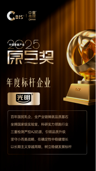 近日,以“智・创未来”为主题的第十二届CBIS中国婴童产业大会在北京盛大举行。作为中国婴童产业发展的深度参与者与重要见证者,已成功举办十二届的 CBIS大会,始终紧扣时代脉搏,推动着行业的发展和变革。在备受瞩目的“原点奖”颁奖典礼上,光明乳业凭借在产品创新、渠道赋能、行业贡献等方面的突出表现,一举摘得2025婴童产业原点奖。