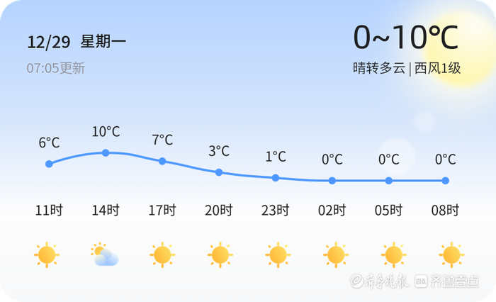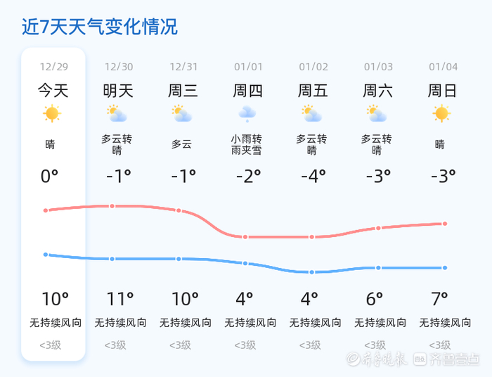 未来三天,菏泽市天气将以多云为主,其中1月1日将有一次小雨转雨夹雪的天气过程。气温方面,最高气温为11℃,最低气温为-1℃,整体呈小幅下降趋势。特别提醒市民,雨雪天气可能导致道路湿滑,出行时请注意交通安全,减速慢行。