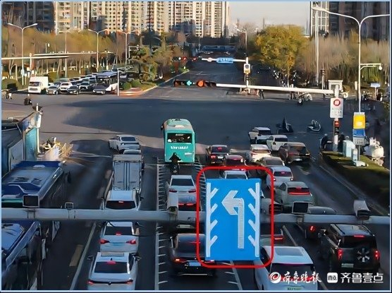 济南交警将第二条左转车道修改为可变车道,在电警横臂上增设可变标志牌,早高峰期间显示为左转车道,其余时段显示为直行车道,满足不同时段车辆通行需求。