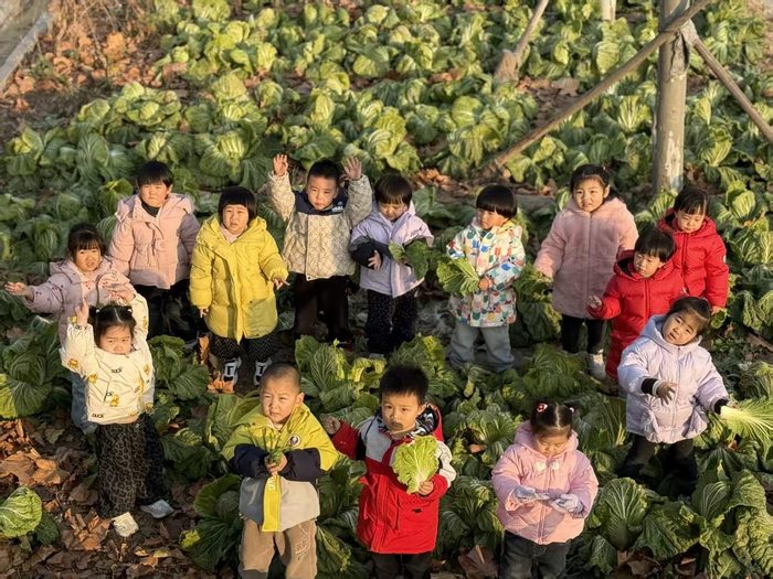 12月29日,东营市河口区湖滨新区幼儿园园内种植园一片热闹景象,一场别开生面的“收白菜”劳动实践活动正在开展。孩子们变身“小小农夫”,在老师的带领下体验收获的乐趣,感受劳动的价值。