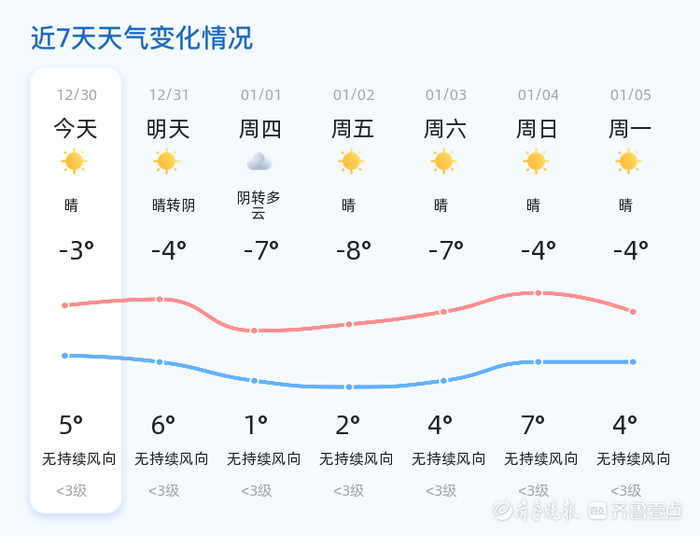 未来三天,德州天气以阴转多云为主,气温将出现较大波动,最低气温可达-7°C,最高气温为6°C。提醒市民及时关注天气变化,尤其是气温骤降时,注意添衣保暖,避免感冒。