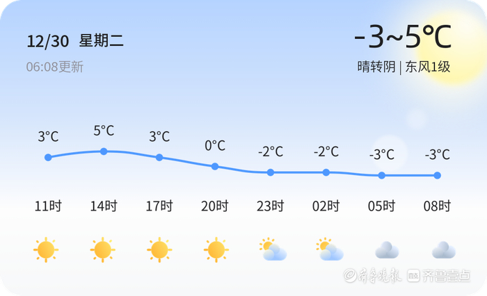 今天是12月30日,星期二,农历十一月十一。德州迎来晴转阴的天气,气温在-3°C到5°C之间波动。目前温度为-4.9°C,湿度较高,达93%,风力较小,为东风1级。PM2.5指数为209,属于中度污染,提醒市民注意防护。
