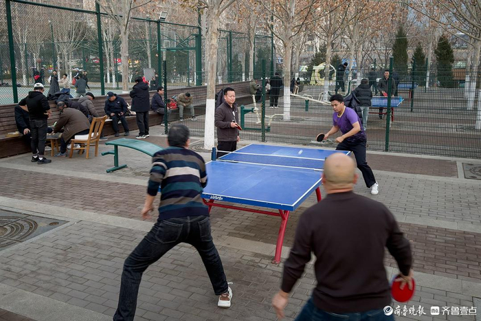 12月28日,在济南望岳康体公园的露天球台旁,有人只穿件 T 恤露着胳膊,弓步挥拍劲头十足,小球在球台上来回穿梭。一旁的长椅上,看客们凑着热闹支招,冷冽的风里,这片场地攒满了实打实的热乎劲儿。