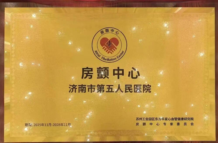 此次授牌标志着济南市第五人民医院在房颤等心律失常疾病的诊疗与急救能力方面,已迈入国内先进行列,达到标准化、规范化水平。同时,也意味着济南市立五院为心脏病患者构建起一个集综合管理、规范诊疗、多学科协同于一体的高质量平台。