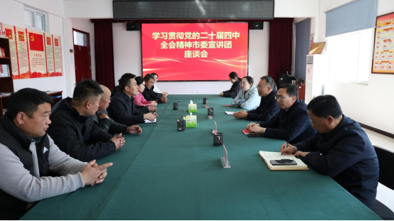 报告会后,马汉涛来到谷亭街道蒋庄村调研,并向基层干部群众宣讲党的二十届四中全会精神。